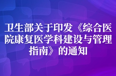 为指导和加强综合医院康复医学科的建设和管理,推动康复医学的发展,我部对《综合医院康复医学科管理规范》(卫医发〔1996〕13号)进行了修订